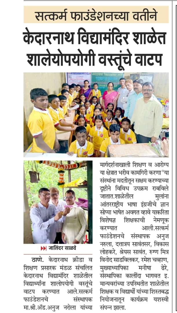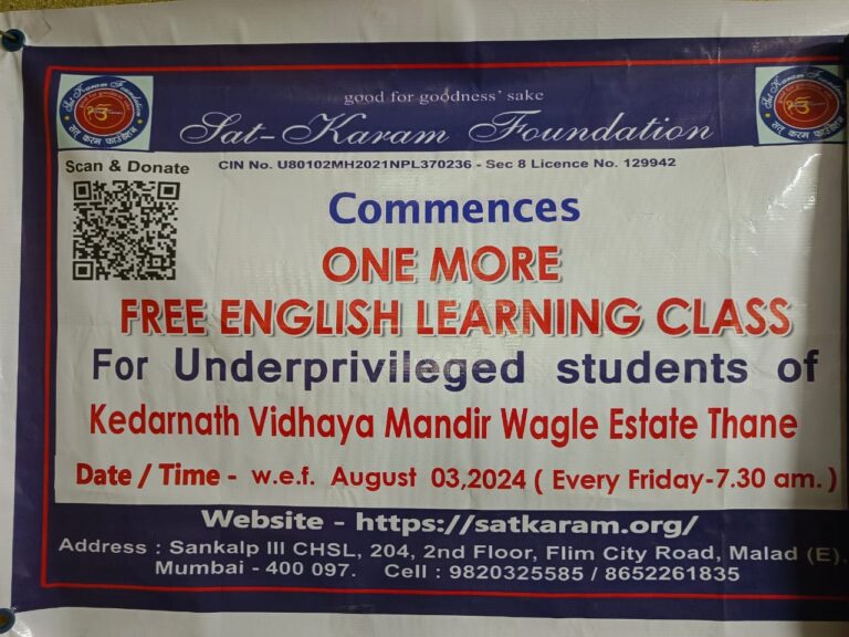 February 15, 2025 Events Comment off Sat-Karam Foundation in collaboration with ENGLISH VINGLISH commences one more free english learning class for underprivileged students of Kadarnath Vidya mandir Wagle Estate, Thane on 3rd, August 2024.