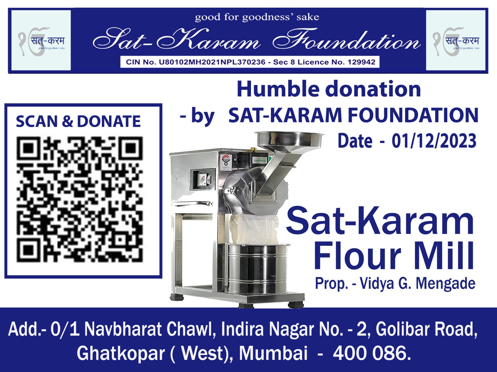 May 15, 2024 Events Comment off On 1st Dec 2023, Sat-Karam Foundation provided Flour Mill to an underprivileged Woman to enable her to earn her living.