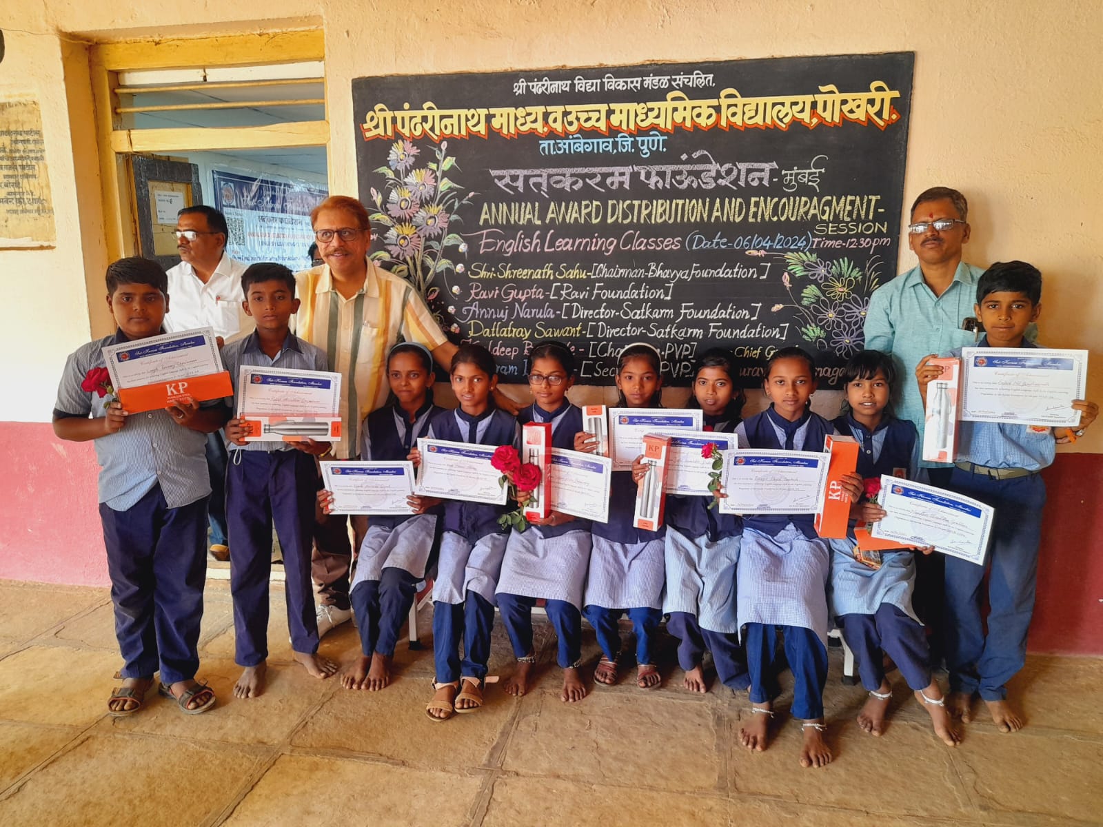May 28, 2024 Events Comment off On 6th April, 2024, English Learning class award distribution & encouragement session by English Vinglish NGO at Shree Pandharinath Vidhyalaya, Pokhari, Tal. Ambegaon (Bhimashankar), Dist. Pune.