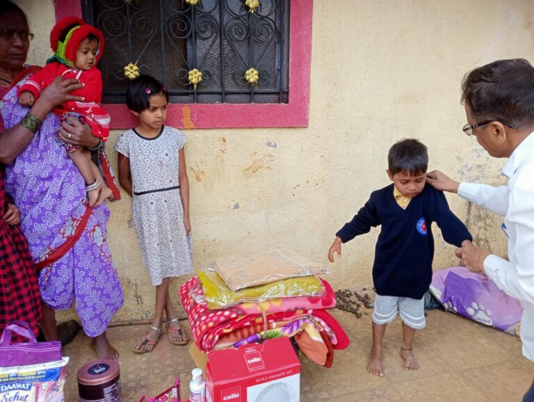 May 18, 2024 Events Comment off On 17th Dec, 2023, Satkaram Foundationn helped a victim of fire of Shri. Kisan Sable in re-building his house by sharing 50 cement bags, mattress, sweaters, blankets, utensils & ration etc. at Rajewadi, Sablewadi, Tal. Ambegaon, Dist. Pune.
