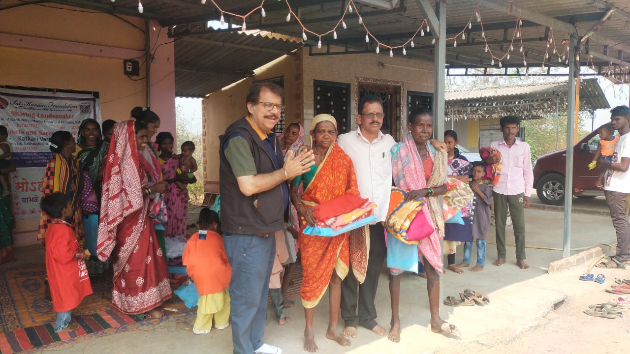 On 9th February 2025, Sat-Karam Foundation donated Loudspeaker to Aadarsh Vidyamandir, Kinhavli & Blankets & Sarees to Katkari Vasti in Tribal area at Babhale, Kinhavli, Tal. Shahapur, Dist. Thane.
