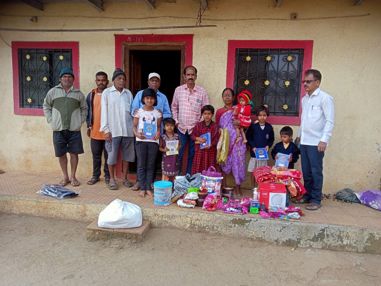 On 17th Dec, 2023, Satkaram Foundationn helped a victim of fire of Shri. Kisan Sable in re-building his house by sharing 50 cement bags, mattress, sweaters, blankets, utensils & ration etc. at Rajewadi, Sablewadi, Tal. Ambegaon, Dist. Pune.